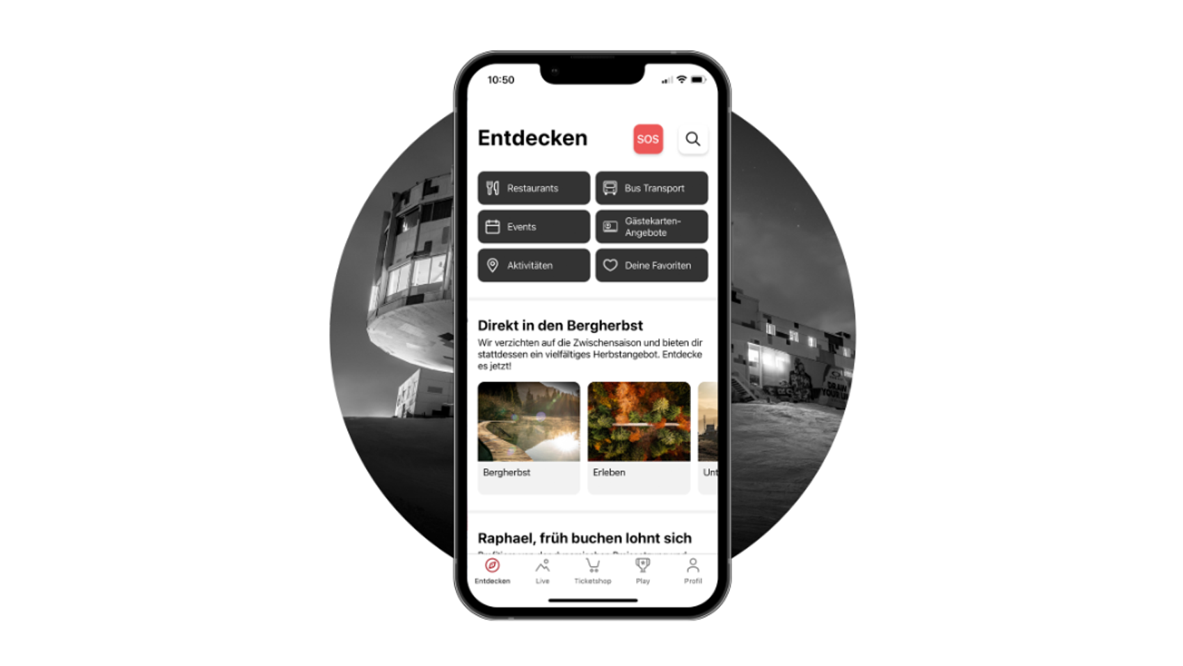 With the app feature EXPLORE you will find all information at a glance, whether through the search or quick links in your personal feed. Just swipe up once and your personal feed shows everything that is especially relevant to you in LAAX right now. Whether bank, bakery or burger, with the search you can discover the holiday destination in no time. In various gastronomy establishments you can also reserve a table or order your food with Mobile Ordering.