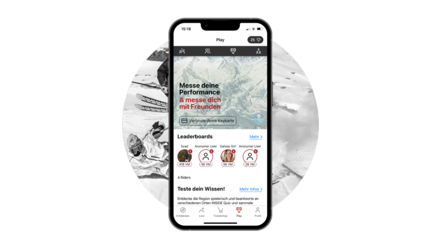 Under PLAY, your playground, LAAX, unfolds. As soon as you connect your Keycard and head up the mountain, your personal LAAX adventure begins. Collect all the badges, ride as many days as you can, and climb the leaderboard for ultimate glory and a big LAAX points account. On the personal map you can look back on the season and remember your best moments. On the leaderboards you beat all your colleagues anyway, right?